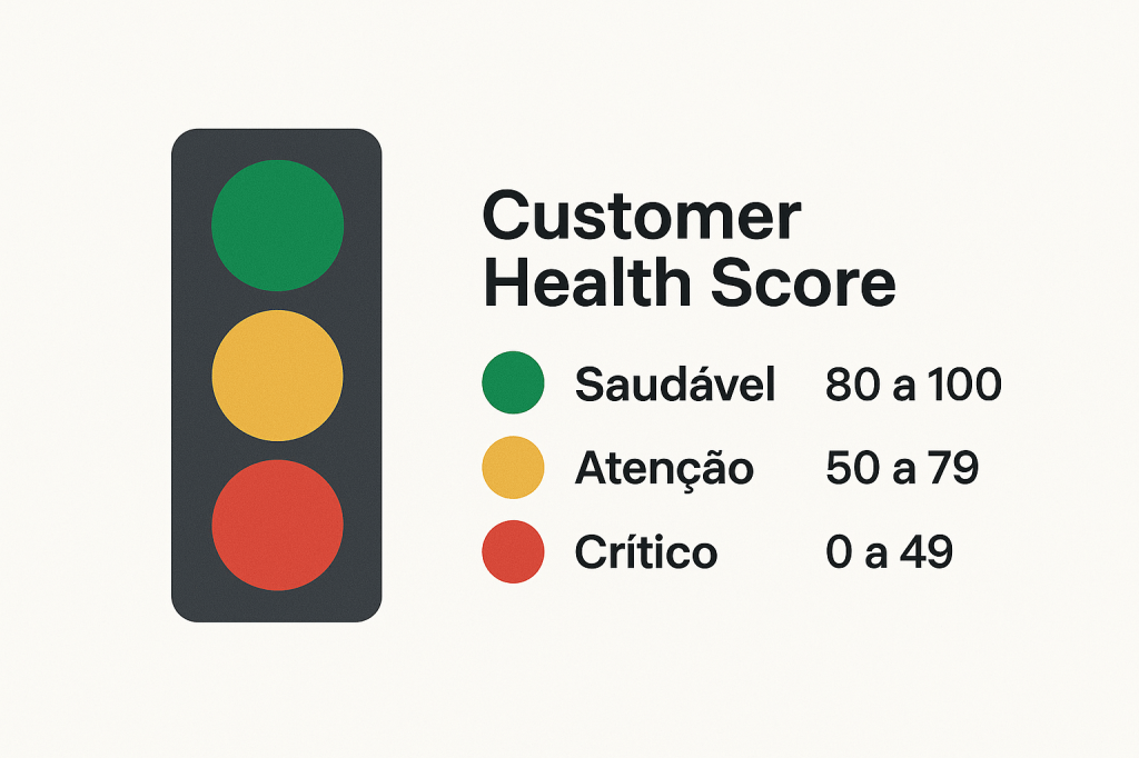 - Vermelho (Crítico): 0 a 49 pontos → Alto risco de churn, ação imediata necessária.
