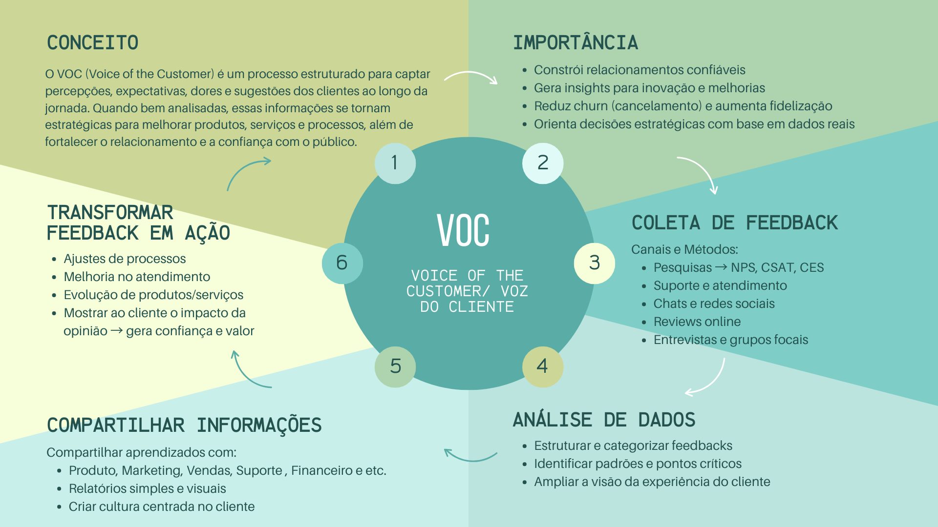 Por fim, é importante lembrar que VOC não é um projeto pontual, mas sim um ciclo contínuo. O processo de ouvir, interpretar, agir e validar deve ser repetido constantemente, porque as necessidades e expectativas dos clientes mudam com o tempo. Manter esse movimento vivo é o que garante uma melhoria contínua na experiência oferecida.