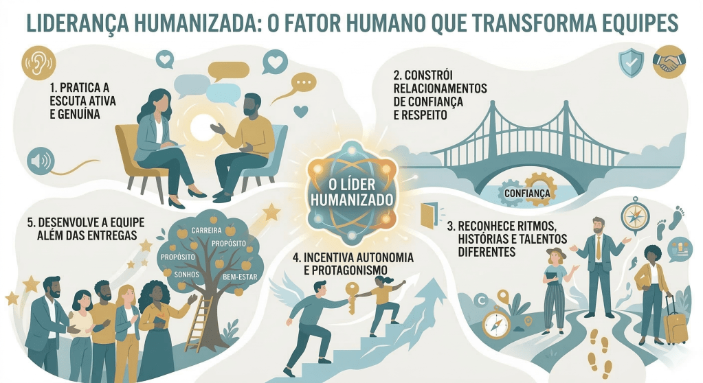 A liderança humanizada olha para pessoas, não para “recursos”.